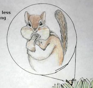 The reference visuals that inspired my visualization are above. The two chipmunk images helped to inform the facial striping and the mouth and body shape of ‘Fred’ the fictional chipmunk, while the sage served as a basis for my own in terms of leaves and stems.