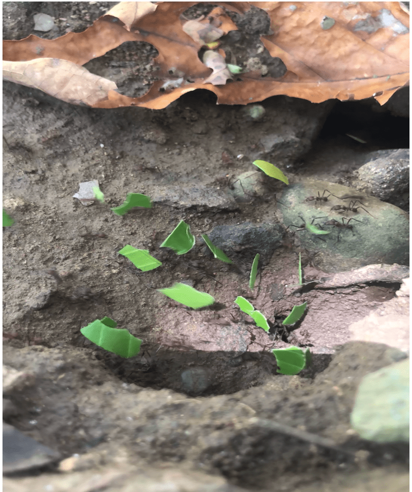 Once I had located a plethora of hives, I filmed and measured the leaf cutter ants incrementally throughout the morning in order to observe the ants. After filming 10 minutes every 30 minutes, I carefully stopped the camera, so as to keep the camera angle consistent throughout my entire observational period. After conducting all my observations, I hoped to answer my driving question: are leaf cutter ants of different sizes more active during certain parts of the day?