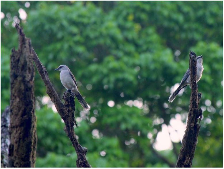 Tropical Mockingbirds are blue jay-sized birds that live in pairs or family groups. They are known to defend their nesting and foraging territories by singing (done by the dominant male), scolding with harsh “fussing” noises, and, if necessary, attacking the intruder (Botero et al. 2007). In my study site, these birds are found in and around developed areas such as neighborhoods, churches, and playgrounds.
