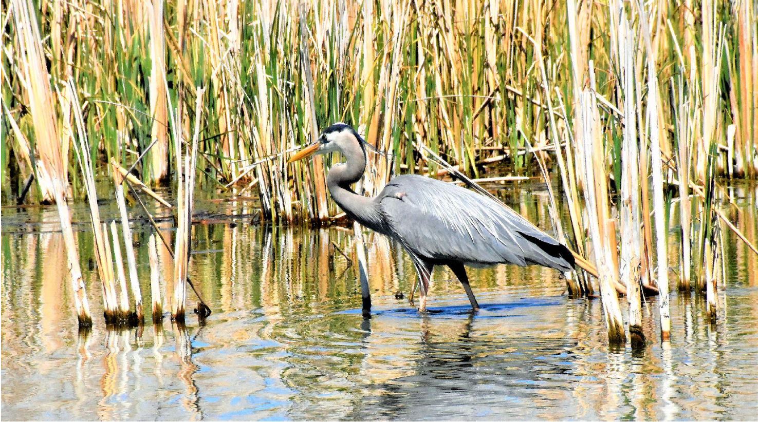 wetlands across North America. The heron is hunting for small fish around stands of cattails. Image: Stephanie Knoll